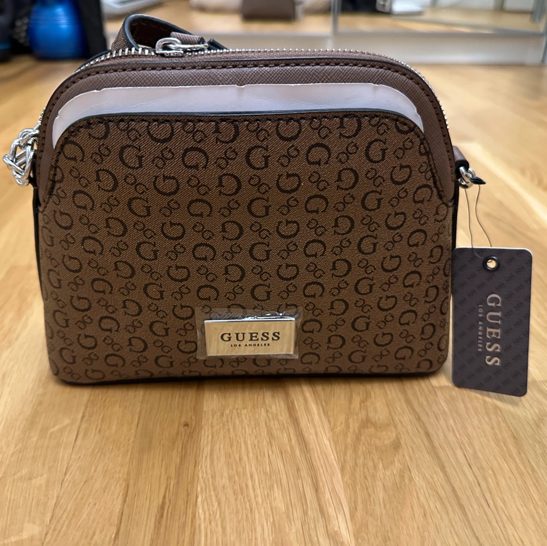 Brun Guess axelarmsväska i konstläder, helt ny med etiketter