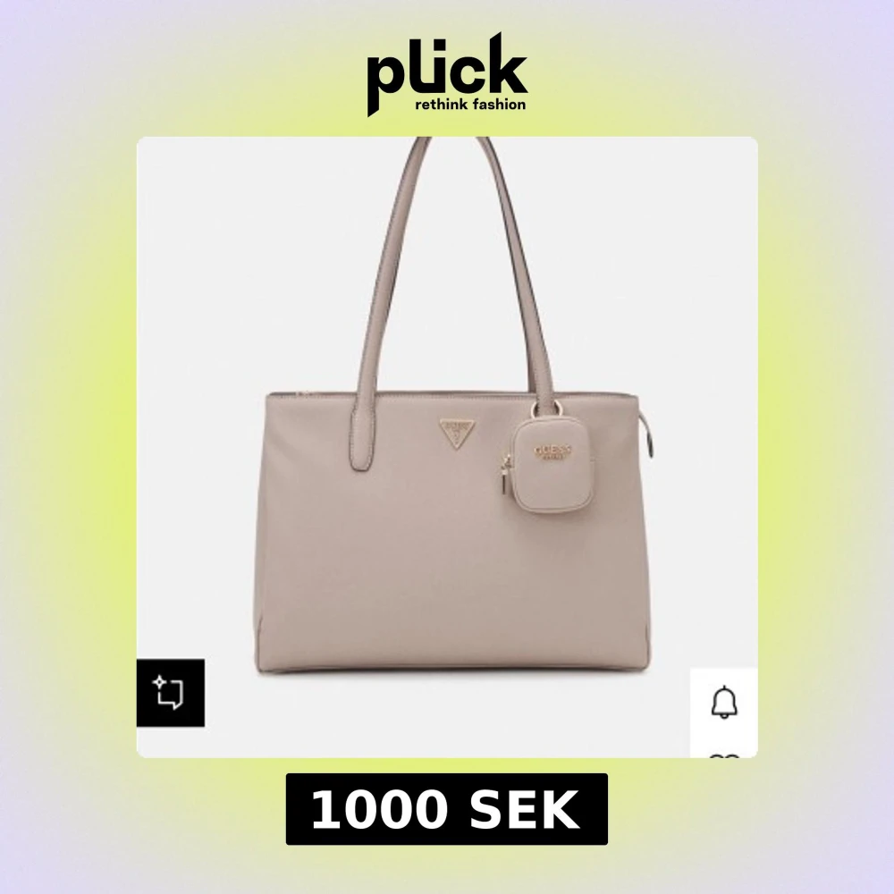 Stilren beige axelväska från Guess med rektangulär form och guldfärgade detaljer. Väskan har två långa axelremmar och en liten avtagbar ficka framtill med Guess-logga. Tillverkad i syntetmaterial med slät yta och dragkedja upptill. Perfekt till universitetet!!! Har många sektioner.