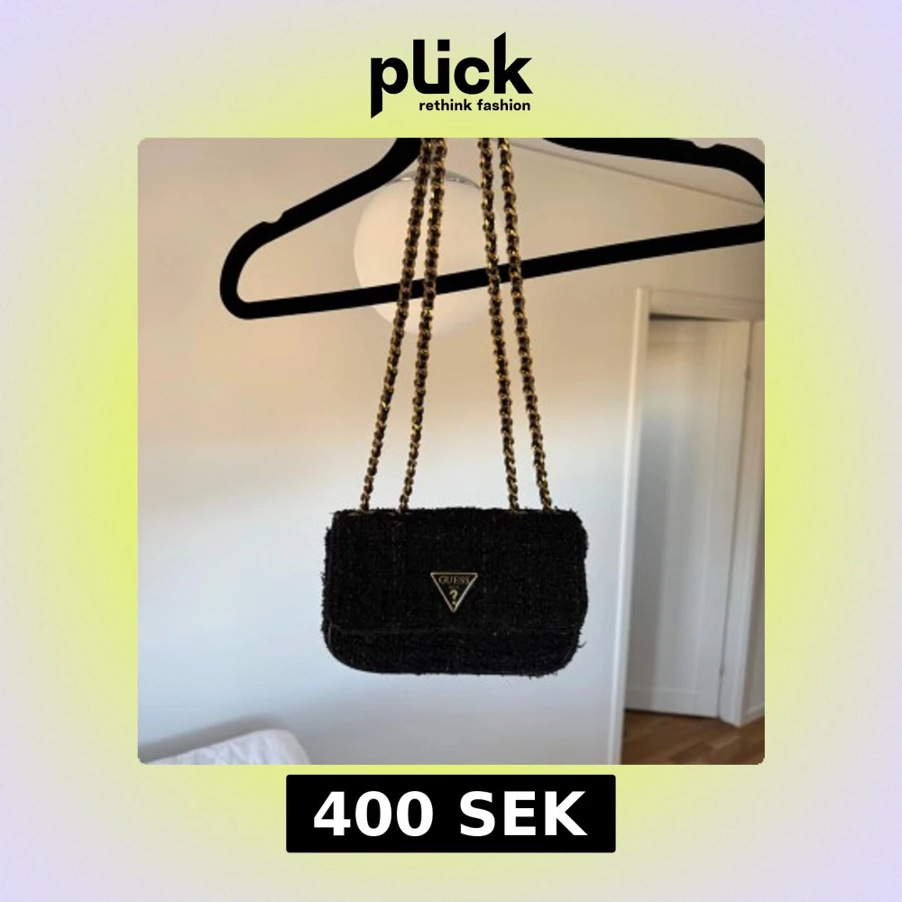 svart axelväska från Guess med kedjehandtag som är justerbar. Nypris för denna är 1200kr, säljer för 400kr