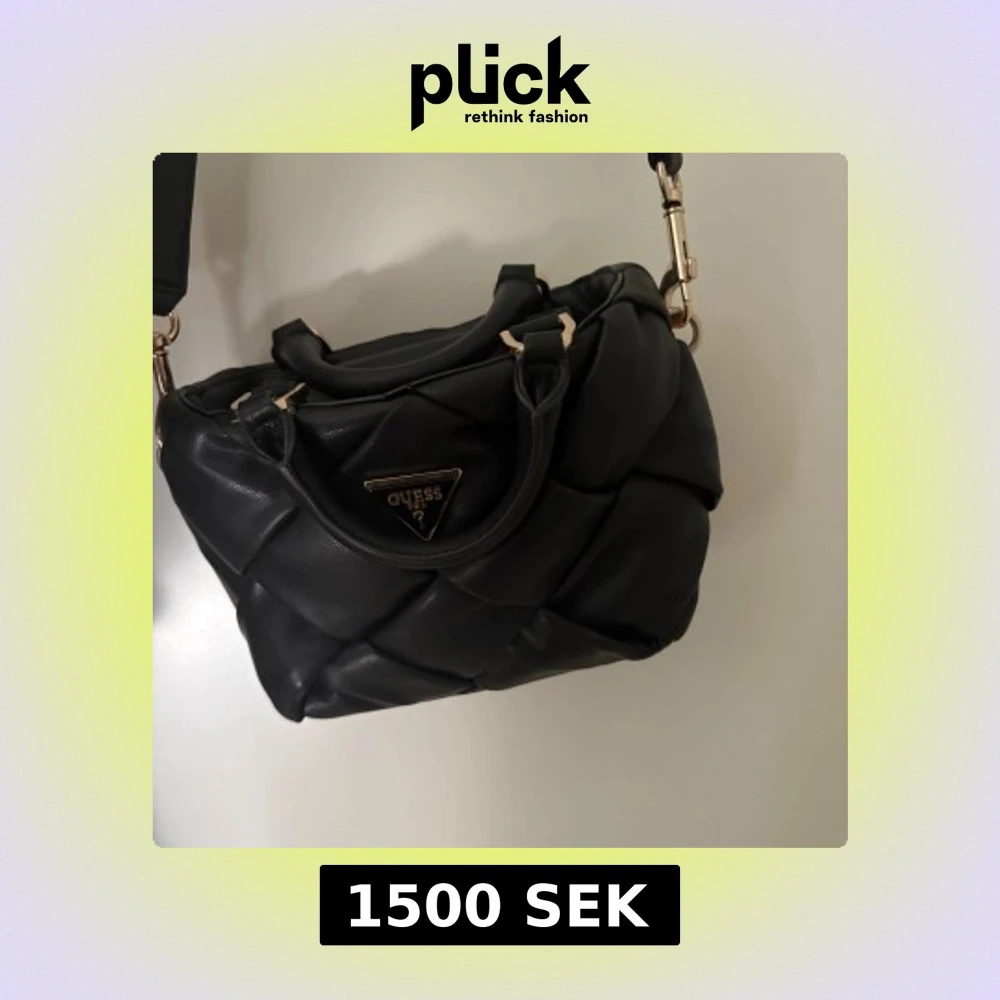 Snygg svart axelväska från Guess med quiltad design och guldfärgade detaljer. Väskan har både handtag och justerbar axelrem, samt den klassiska Guess-loggan framtill. Tillverkad i skinnimitation som ger en lyxig känsla. Säljer på grund av att jag har växt ifrån den. Pris kan diskuteras vid snabb köp