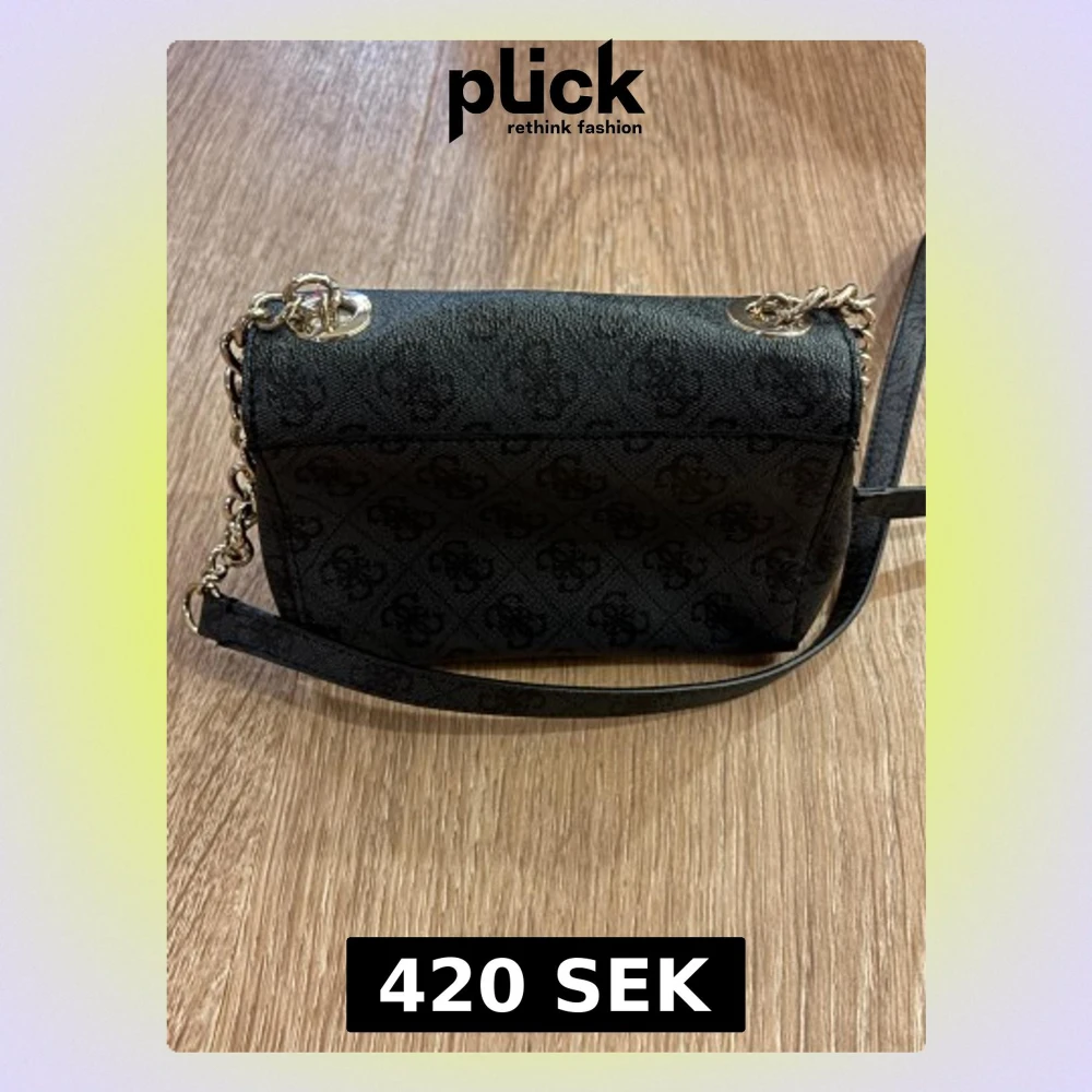 I princip inga tecken på användning💓Snygg svart axelväska från Guess med subtilt mönster och guldfärgad kedja. Väskan har ett dekorativt lås framtill med Guess-logga och flera fack inuti, inklusive dragkedja. Perfekt storlek för det viktigaste och stilren design.