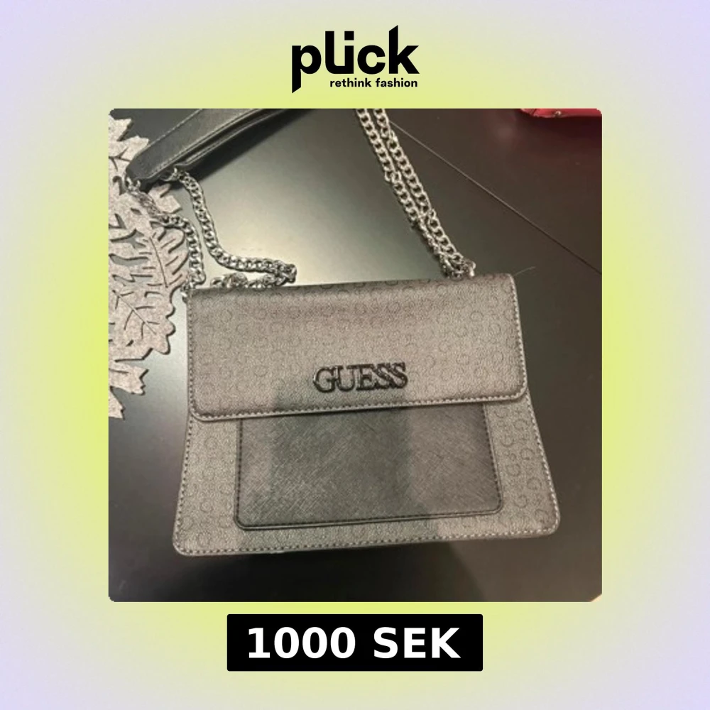 Snygg svart axelväska från Guess med kedjeaxelrem och logotyp framtill. Väskan har en praktisk dragkedja inuti och en magnetknapp för enkel stängning. Perfekt för att bära dina nödvändigheter med stil. Säljes då den inte kommer till användning. Nypris ca 1800kr säljes för 1000kr