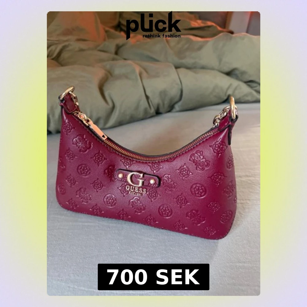 Guess gerty handväska i färgen claret, org. pris 1495kr, säljs 700kr eller närmast bud💖 inga synliga skador och enstaka repor på metallen, men i nyskick!😊💕 vid frågor, skicka meddelande🥰