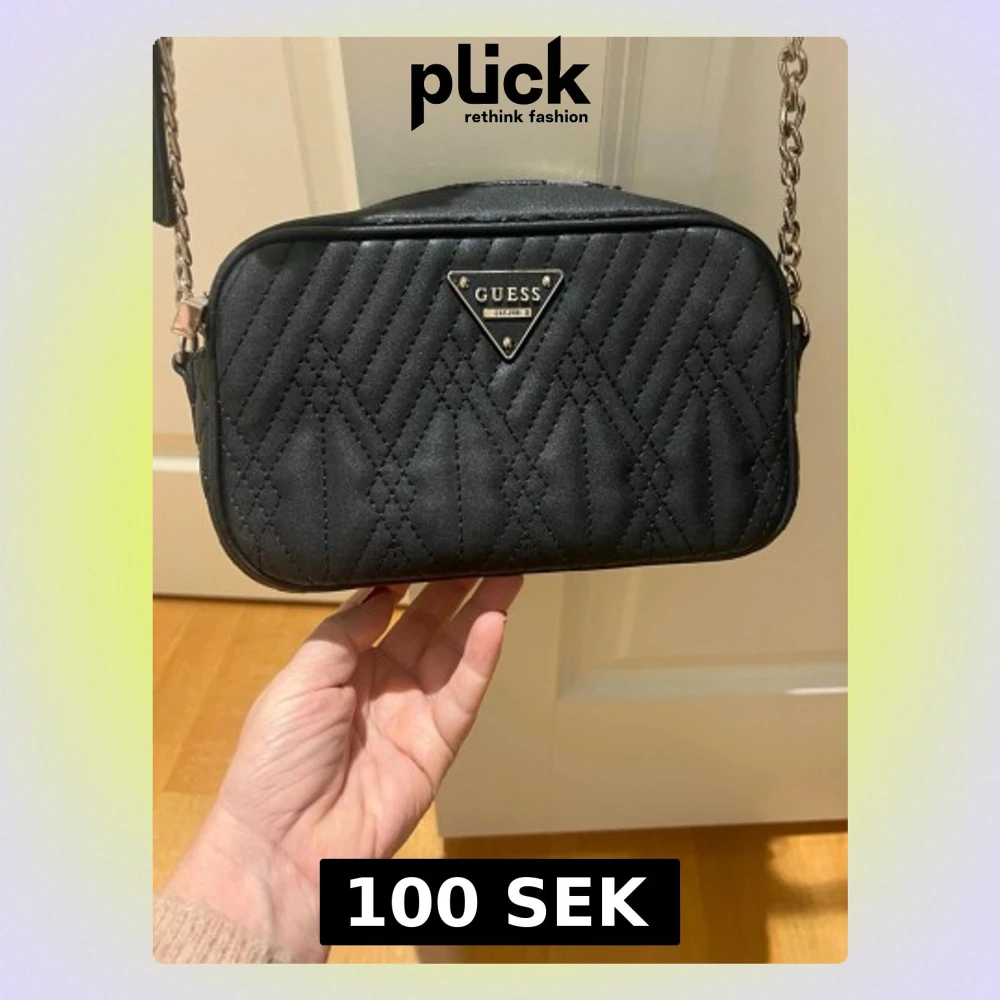 Snygg svart quiltad handväska från Guess med kedjerem och triangelformat metallogo framtill. Väskan har ett stilrent mönster och är tillverkad i syntetmaterial. Perfekt för dig som vill ha en trendig accessoar med plats för det viktigaste.