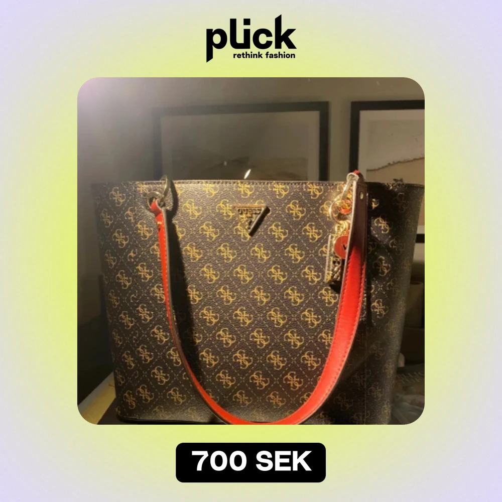 Helt ny väska från Guess, köpt från Zalando för 1600 kr. Inga skador eller missfärgningar. Mått: Höjd: 27 cm Längd: 38 cm Vidd: 12 cm Handtag: 25 cm