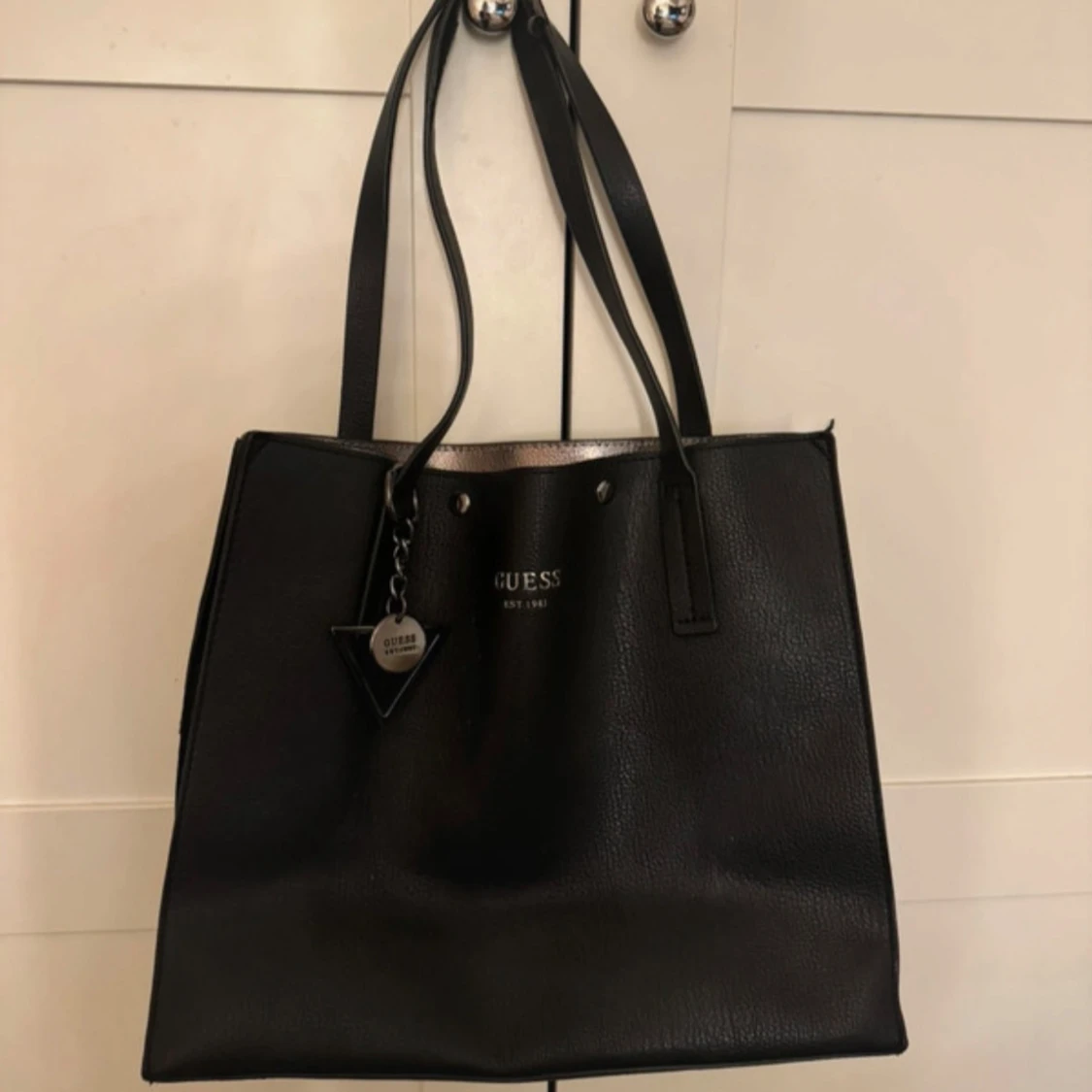 Svart Guess väska!! I nyskick utöver defekten på handtaget (därav priset)💌