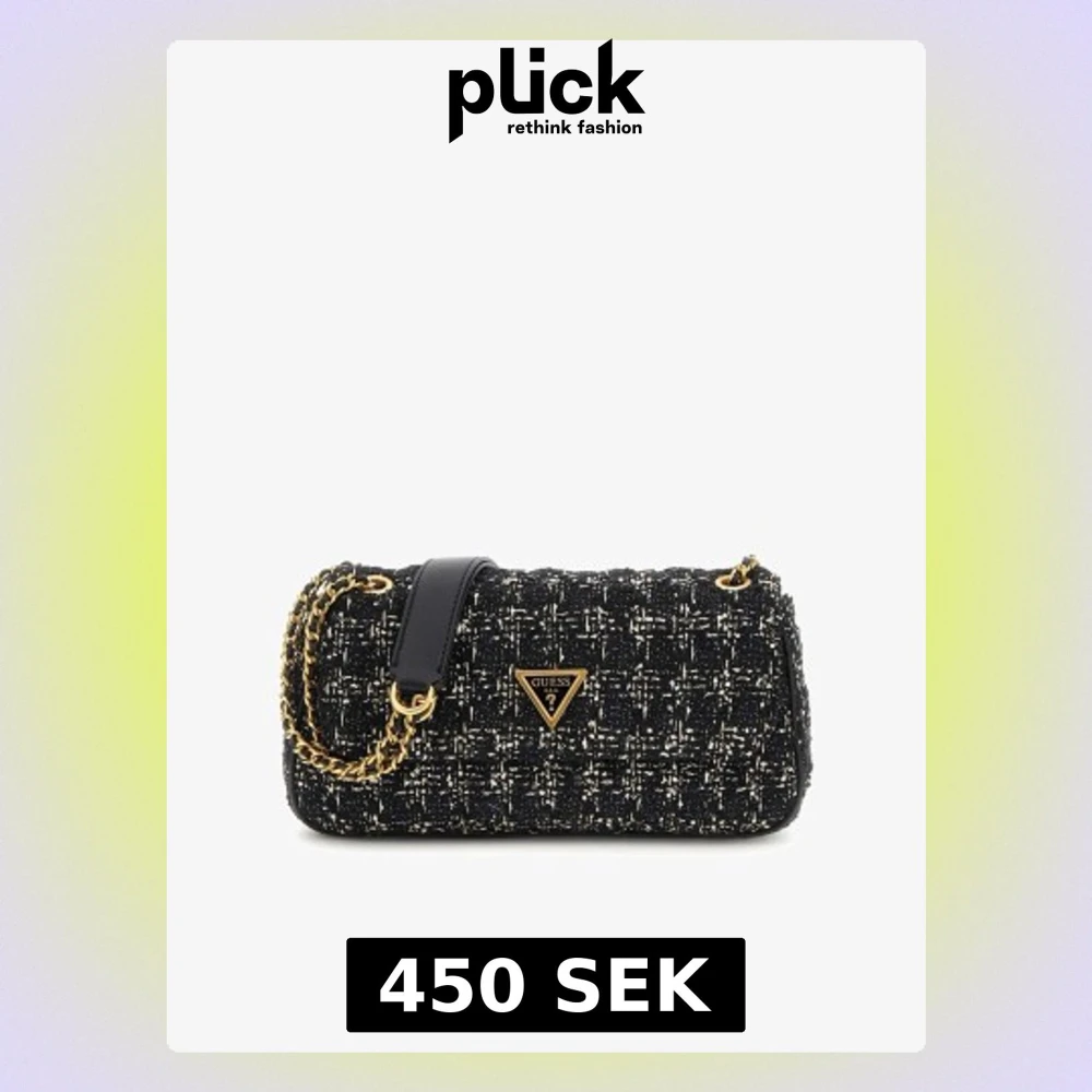 Jätte snygg slutsåld guess väska. Den har lite paljetter som glittrar i tyget men de syns inte på bild. Väskan är rymlig och har ett litet fack i. Har använt väskan en del och knapparna inuti väskan är lite missfärgade men de syns inte när den är stängd🖤
