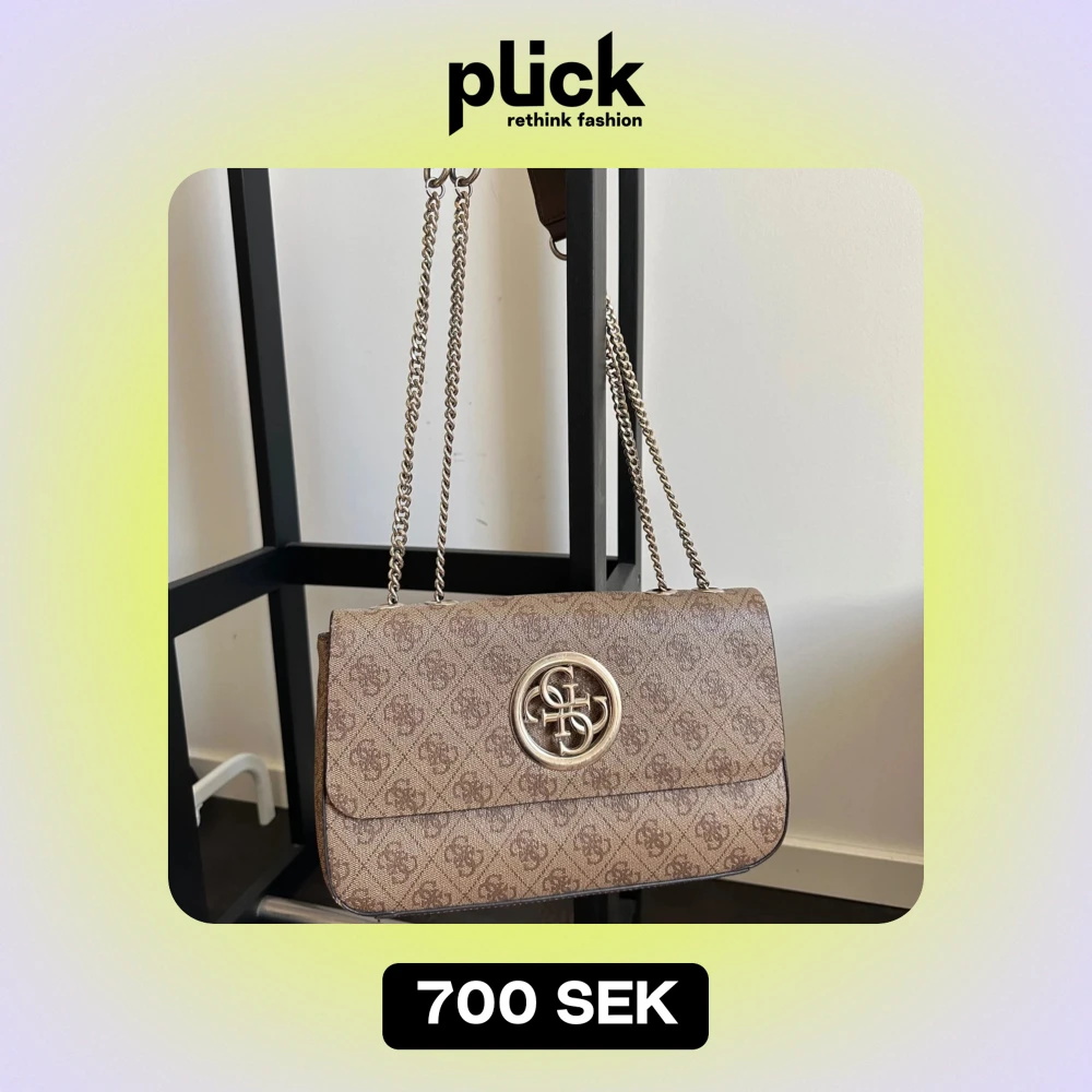 Jättefin Guess väska med dubbla axelband. Ca 28 x 19 x 6cm. Lite repig på märket i fram och en fläck i ena hörnet på insidan av väskan därav billigare pris. Köpt för ca 2000kr, Pris kan diskuteras!