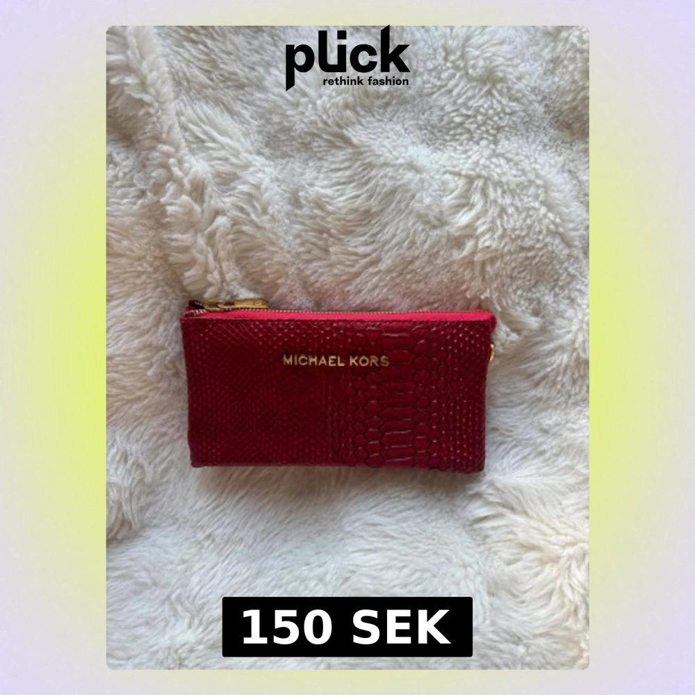 Snygg röd plånbok från Michael Kors med reptilmönster och guldfärgade dragkedjor. Plånboken har flera fack och är perfekt för kort och kontanter. Tidigare köpt second hand.