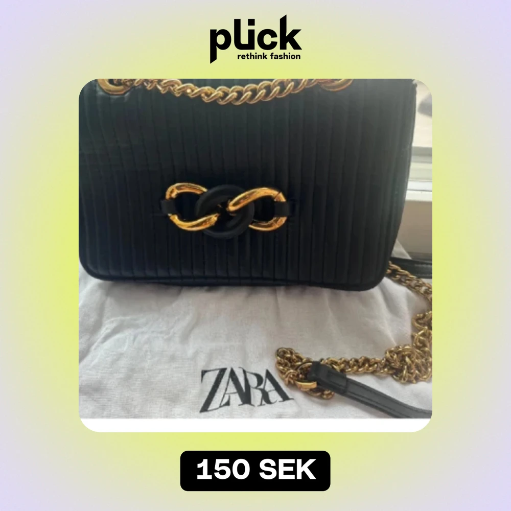 Säljer en ny superfin svart quiltad axelväska från Zara. Väskan har en elegant kedja i guld och en snygg detalj framtill. Perfekt för både vardag och fest! 🖤tygpåse tillkommer med..!