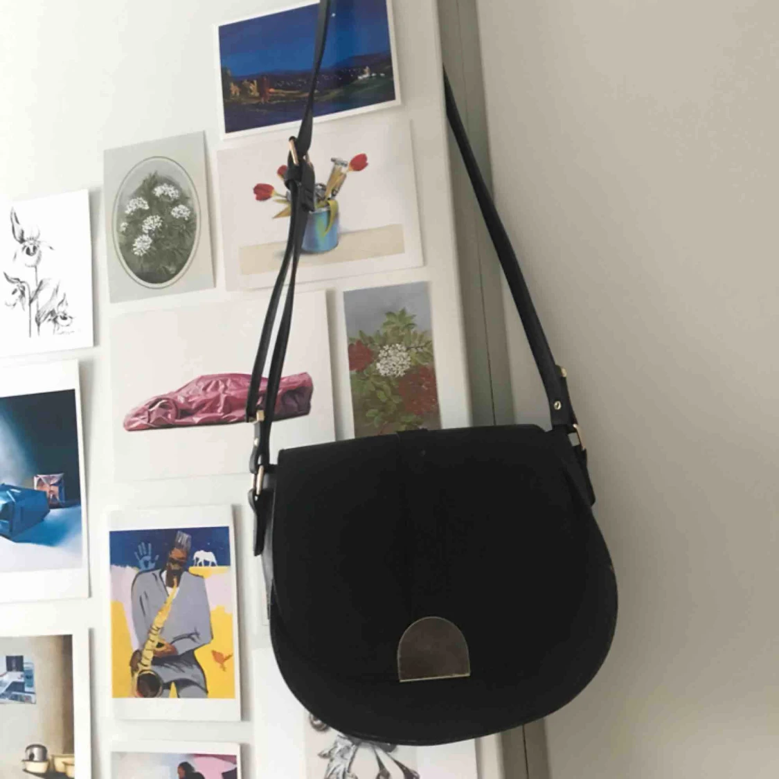 Svarta väska med gulddetalj. Rymlig. 40kr