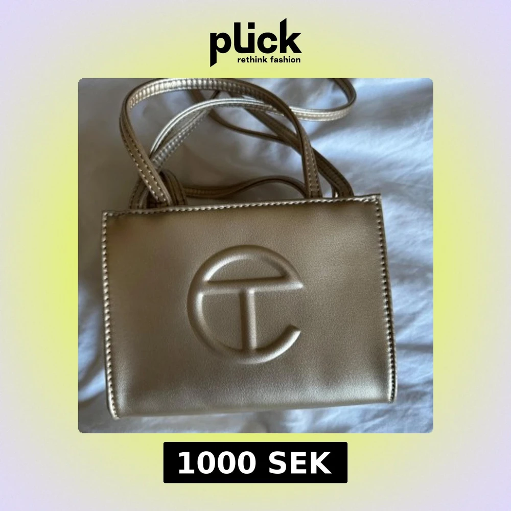 Säljer en snygg guldig axelväska från Telfar med präglad logga på framsidan. Väskan har både korta handtag och lång axelrem, perfekt för att bära på olika sätt. Väskan har smink fläckar på insidan som ni kan se på bild, går att få bort i tvätt. Inga andra defekter och använd endast fåtal gånger. Slutsåld online och köpt för orginalpris