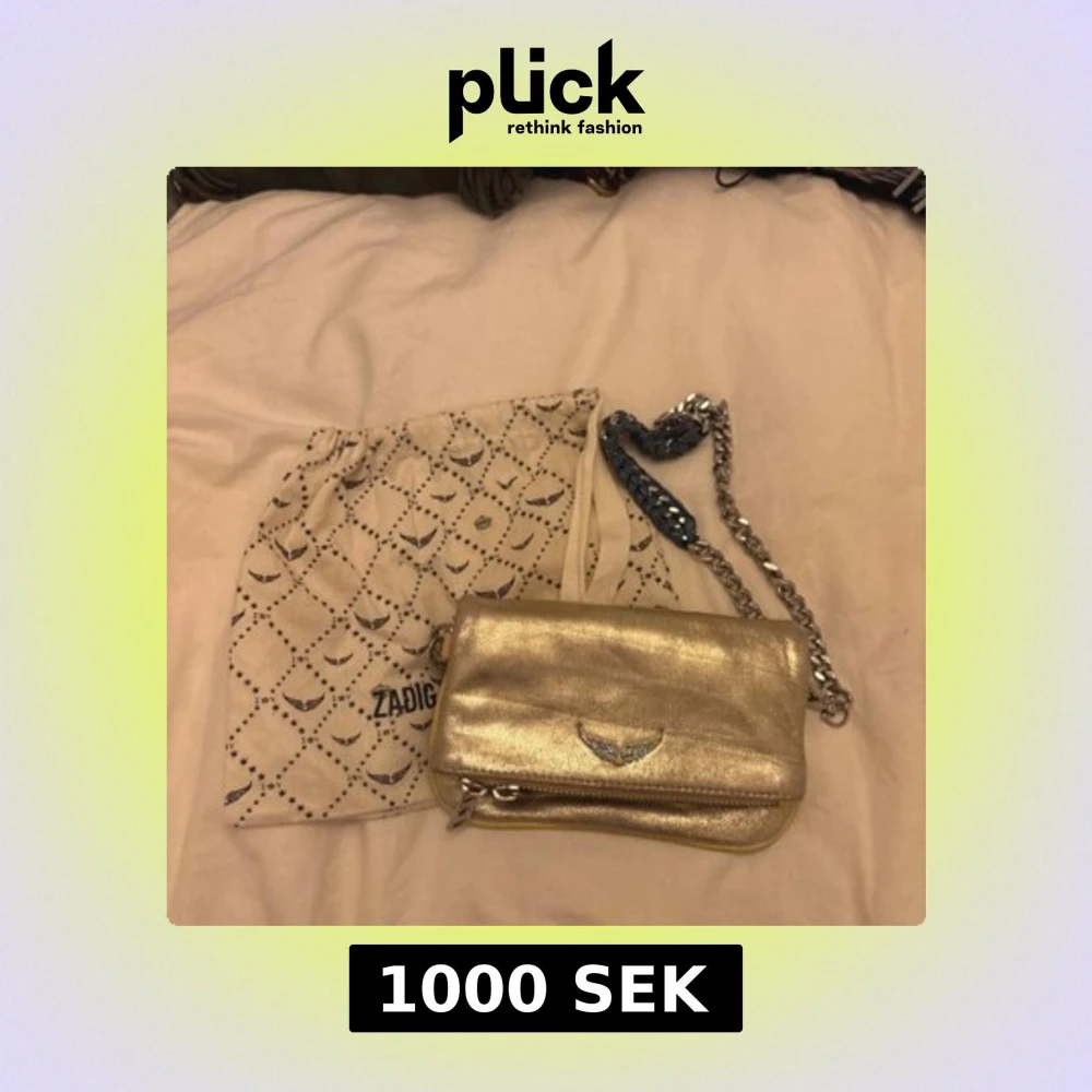 Snygg guldig axelväska från Zadig & Voltaire med kedjerem och dragkedja på baksidan. Perfekt för att ge en glittrig touch till din outfit. Kommer med en praktisk dustbag för förvaring. Nypris: 2355kr