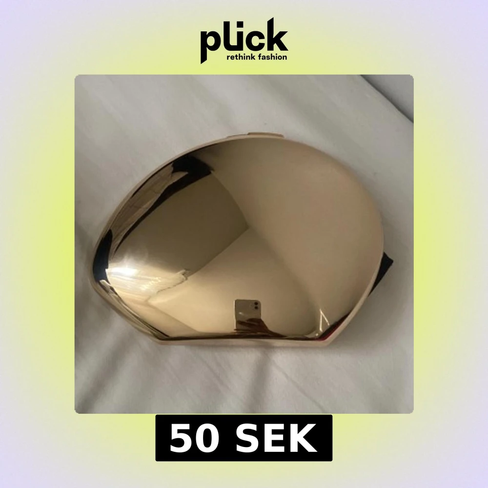 Elegant guldig kuvertväska med en stilren design. Väskan har en metallisk yta och en kedja som axelrem. Perfekt för att ge en lyxig touch till din outfit.