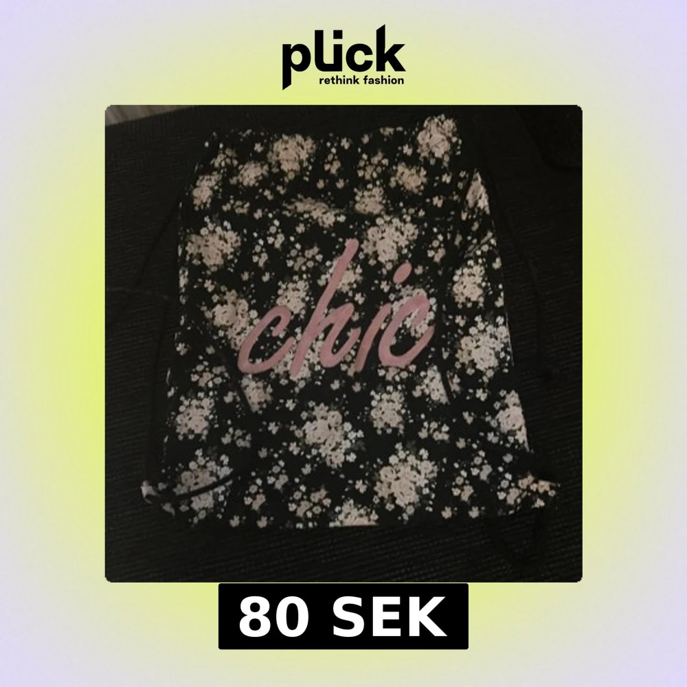 Svart ryggsäck i gympåse-modell med blommigt mönster. Säljer pga har ej användning för den.