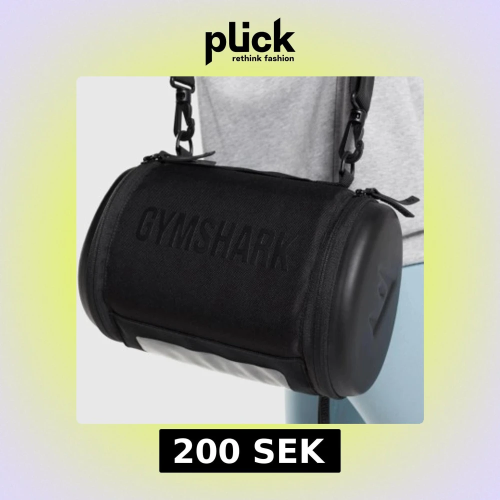 Cool svart axelväska från Gymshark i cylinderformad design. Väskan har tydlig logga, justerbar axelrem och dragkedja upptill. Tillverkad i slitstark polyester med detaljer i syntet och hårda gavlar. Perfekt för att bära med sig essentials till gymmet eller på språng. Helt ny och aldrig använt.
