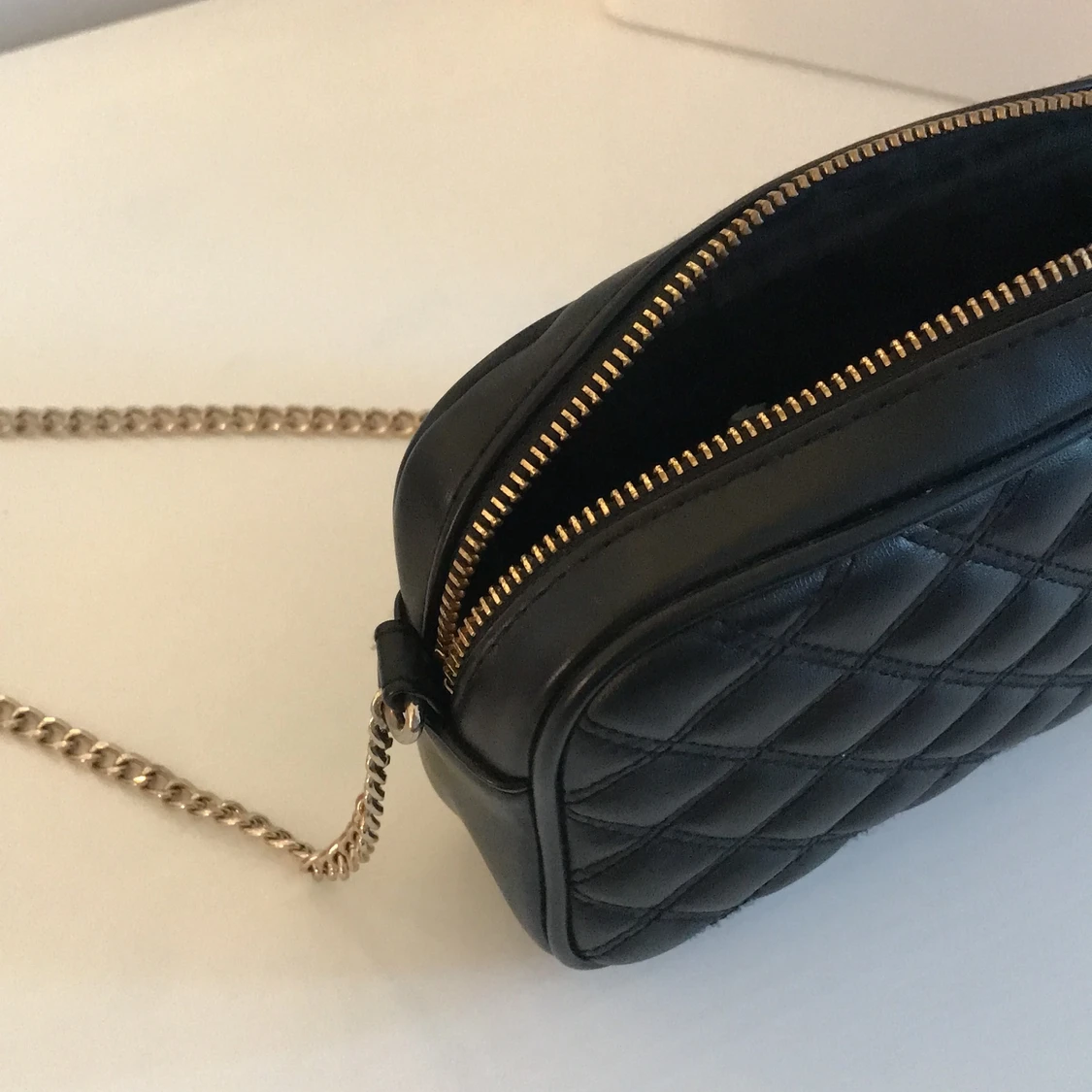 Svart väska från h&m med lång guldig kedja, ett litet fack i och den är sällan använd så den är i väldigt fint skick✨ köparen står för frakten☺️