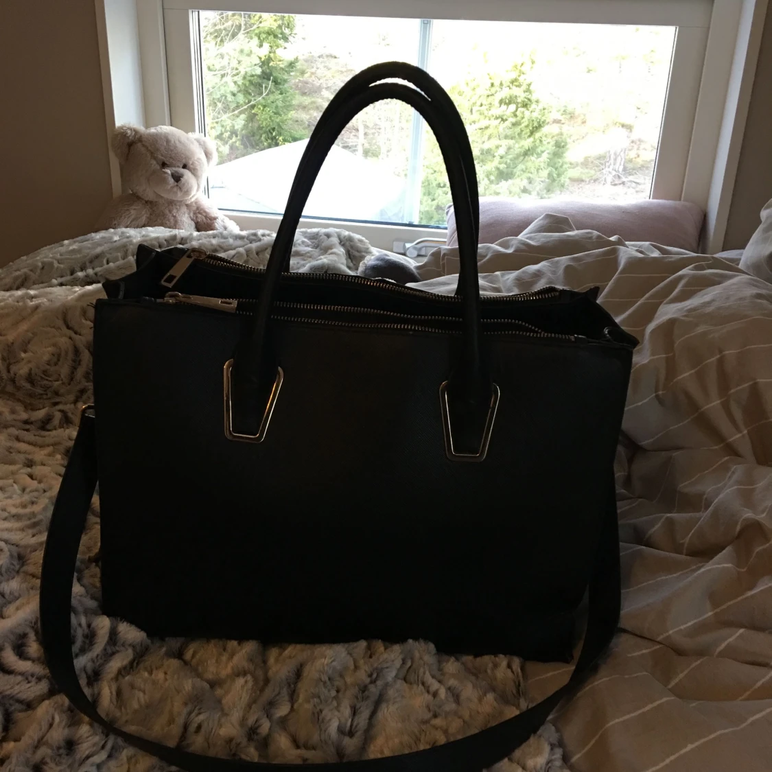Stor och rymlig väska från HM, knapt använd, bra kvalite. Inte sliten alls. Många olika fack. Frakt: 50-70kr
