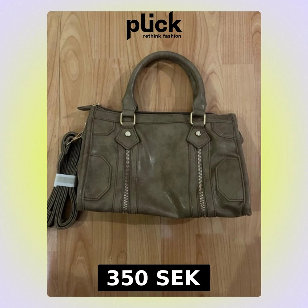 Snygg handväska med guldfärgade detaljer och dragkedjor framtill. Väskan har både handtag och en lång axelrem som går att ta av. Mått finns på bilderna och passar perfekt till alla dina essentials. Pris går att diskutera💞