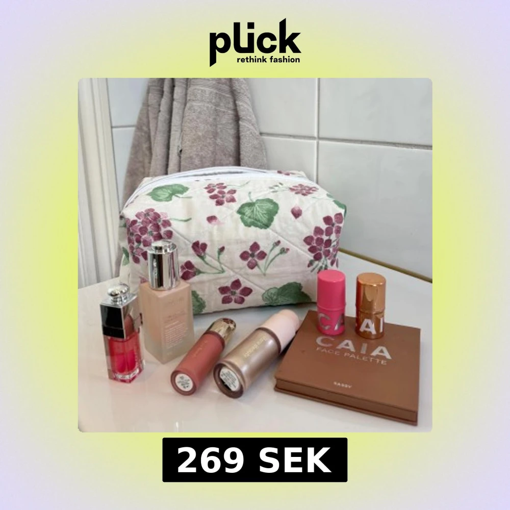 Handgjord necessär som jag har sytt själv💕 Det är den stora modellen och är väldigt rymlig💌✨ Blommigt tyg på utsidan med ett vitt tyg på insidan, samt en vit dragkedja😚💗