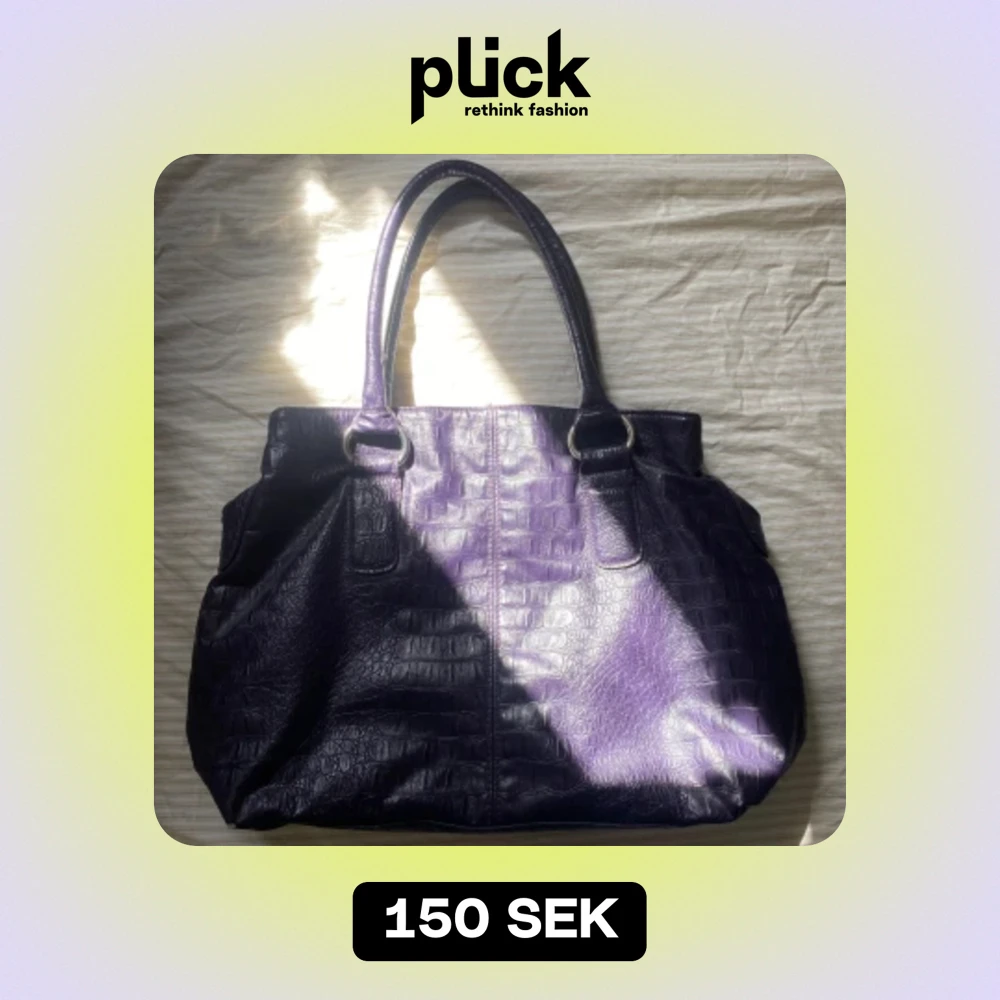 Stor och rymlig mörklila handväska. Köpt second hand, lite skavd i botten annars bra skick! Skriv vid frågor. Köparen står för frakt.