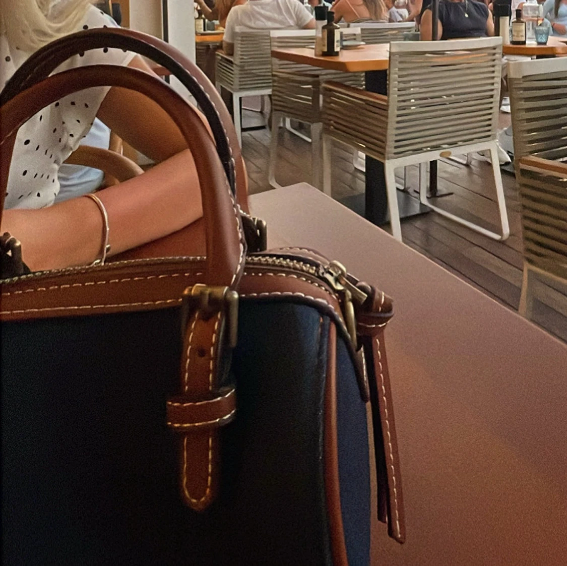 Söt väska som är köpt i marbella🤍den är använd fåtal gånger och ett långt band tillkommer🤍