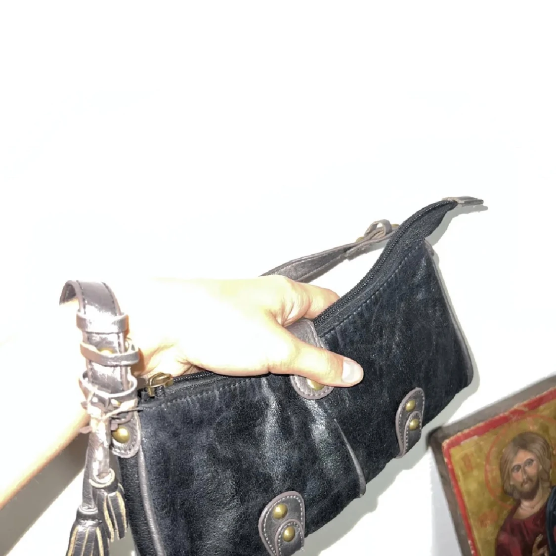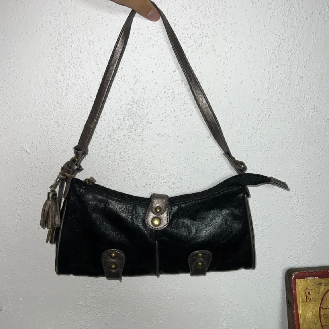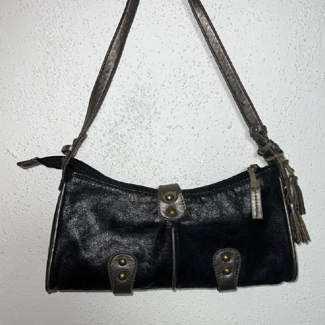 Säljer denna supersnygga handväska! Helt perfekt för en utekväll/fest, eller om man inte vill ha en så stor väska. Väskan har lite slitningar, men inget som jag tycker märks. Köpt här på plick men säljer pga att den inte kommer till användning. Köp!💞