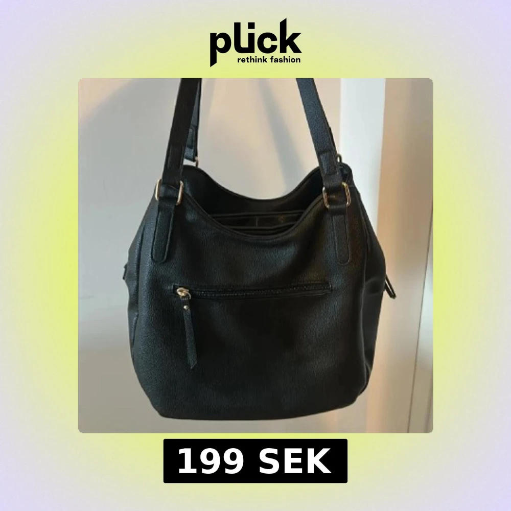 Stilren svart axelväska med guldiga detaljer och tre fack, både med dragkedja och magnetknäppning. Väskan har två breda axelband. Perfekt för dig som vill ha plats för allt du behöver i vardagen. Ordinariepris: 400