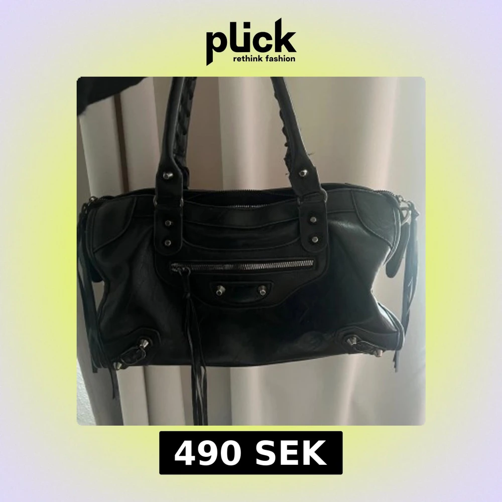 Svart väska med silvriga detaljer. Liknar en Citybag. Några små trådar som sticker ut vid handtagen. I övrigt i väldigt bra skick. 38 x 24cm