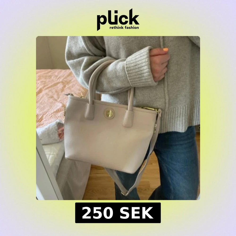 Beige gullig handväska med justerbart axelremsband. Använd fåtal gånger och i mycket bra skick. Flera fack innuti och utanpå, perfekt till skola och jobb