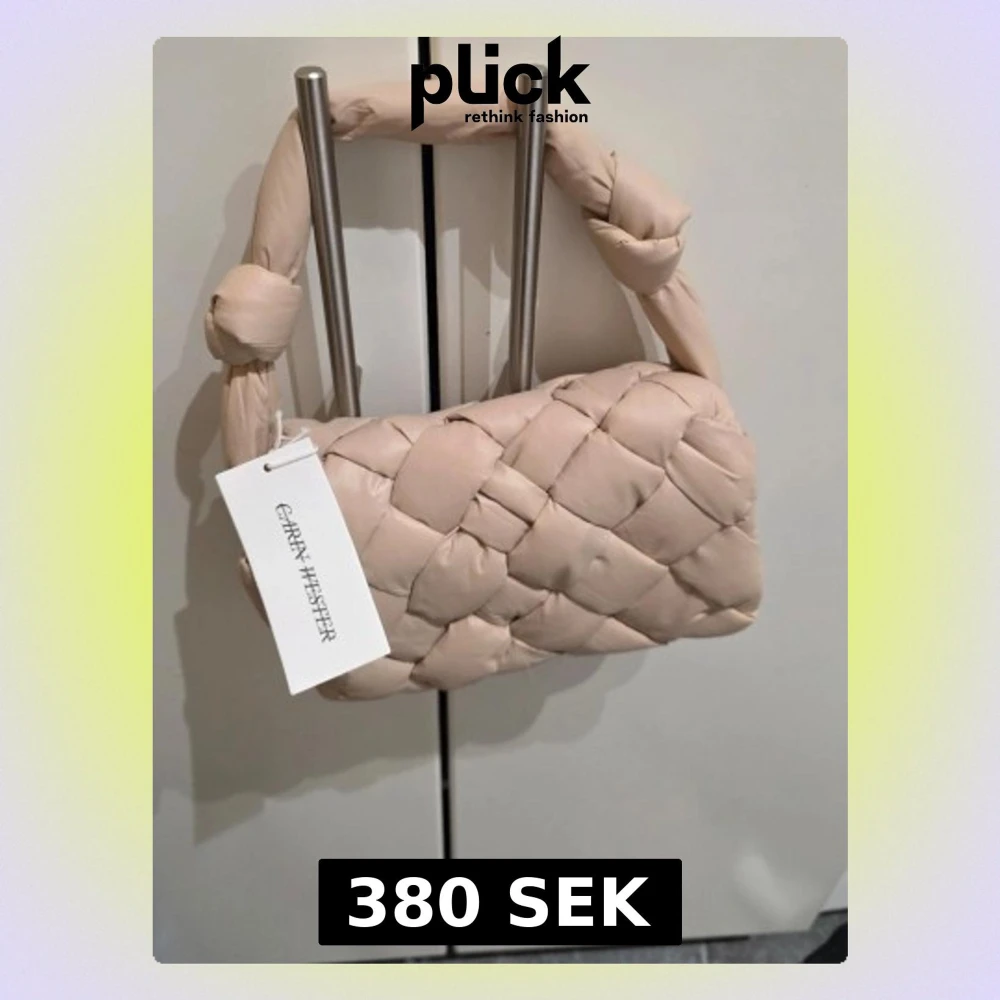 Säljer en beige axelväska från Carin Wester med quiltad design och bred, vadderad axelrem med knutdetalj. Väskan har magnetlås och flera fack inuti för smart organisering. Perfekt storlek för det viktigaste och riktigt snygg att bära över axeln.
