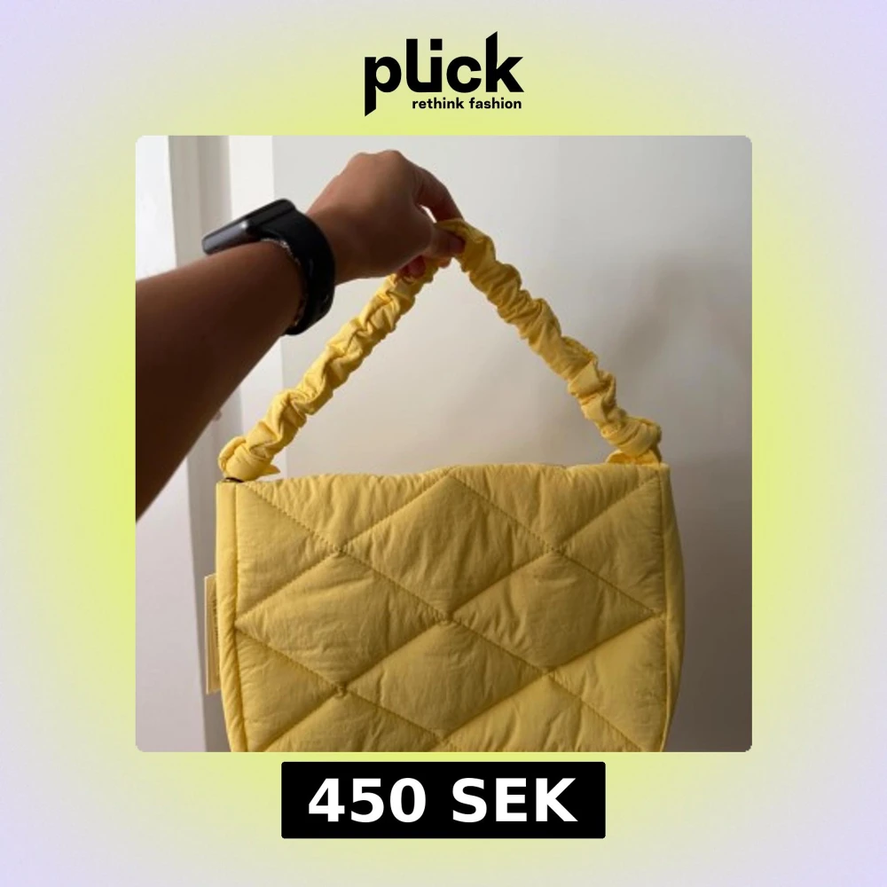 Quiltad handväska i en härlig ljusgul färg från Beck Söndergaard. Väskan har ett vadderat, rutmönstrat tyg och ett scrunchie-inspirerat handtag. Stängs med dragkedja och har en rymlig insida med innerfack. Perfekt för dig som vill sticka ut med en färgglad accessoar.