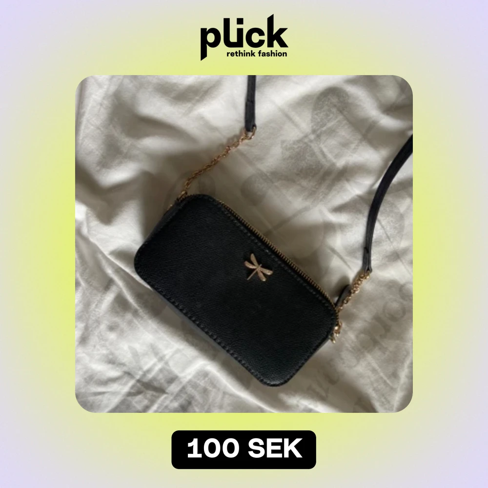 Liten svart handväska med gulddetaljer Nyskick
