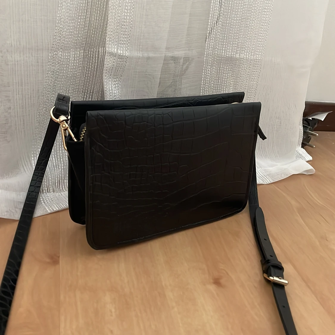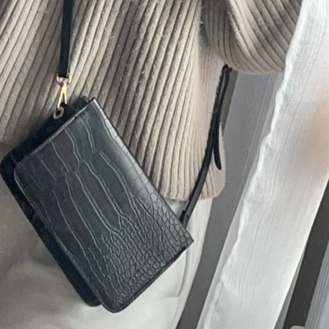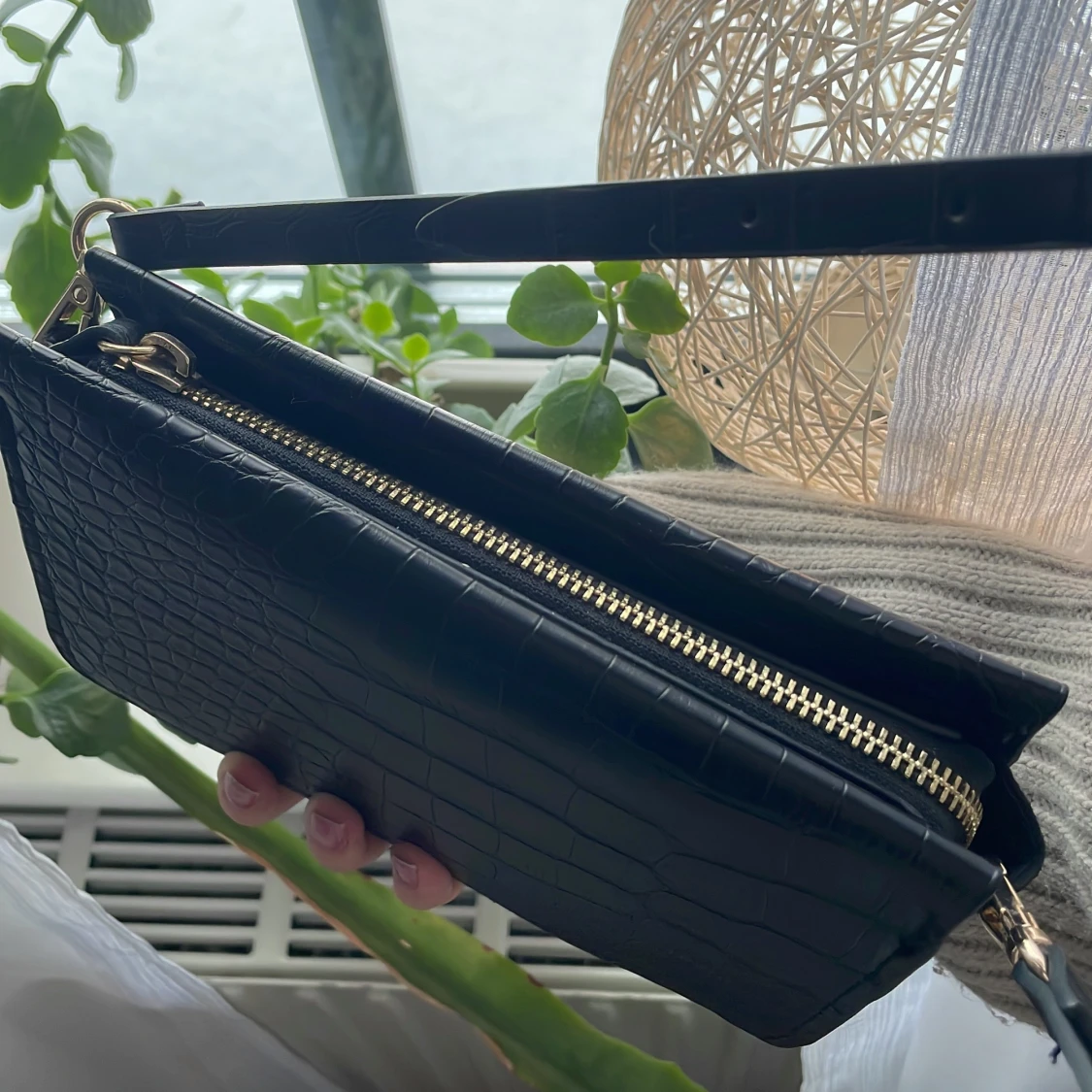 Säljer en liten svart väska i skinnimitation. Supersöt och rymmer förvånansvärt mycket! Mobil, pengar, kort, läppglans, smink osv… väldigt simpel och basic och passar till allt! ☺️ köptes för 250kr har jag för mig men säljer för 75 ❤️