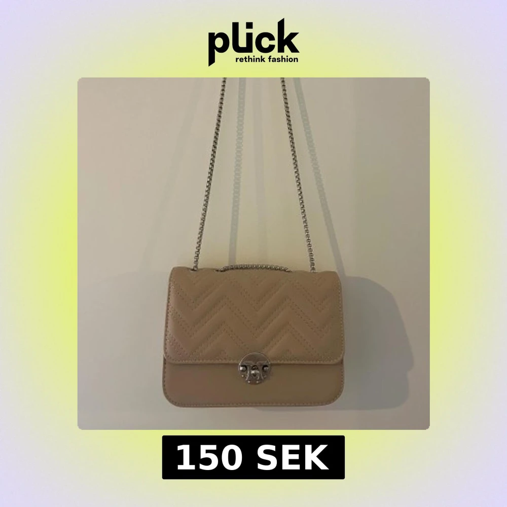 Snygg beige axelväska med quiltat mönster och silverfärgad kedjerem. Väskan har ett stilrent spänne framtill och är tillverkad i skinnimitation. Perfekt storlek för det viktigaste och ger en trendig touch till din outfit.