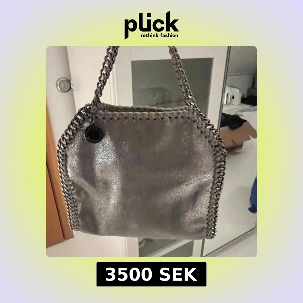 Snygg silverfärgad axelväska från Stella McCartney med kedjedetaljer längs kanterna. Väskan har en metallisk look och en praktisk magnetknäppning. Den långa kedjan ligger i väskan på bilderna. Om intresse finns, kan jag skicka bilder när jag bär väskan som crossbody!