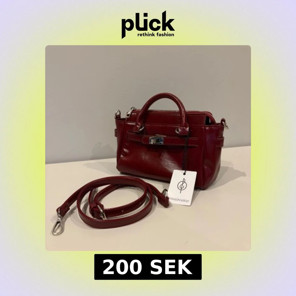 Oanvänd vinröd handväska i skinnimitation från Stradivarius. Väskan har silverfärgade metalldetaljer och avtagbart axelband ☀️