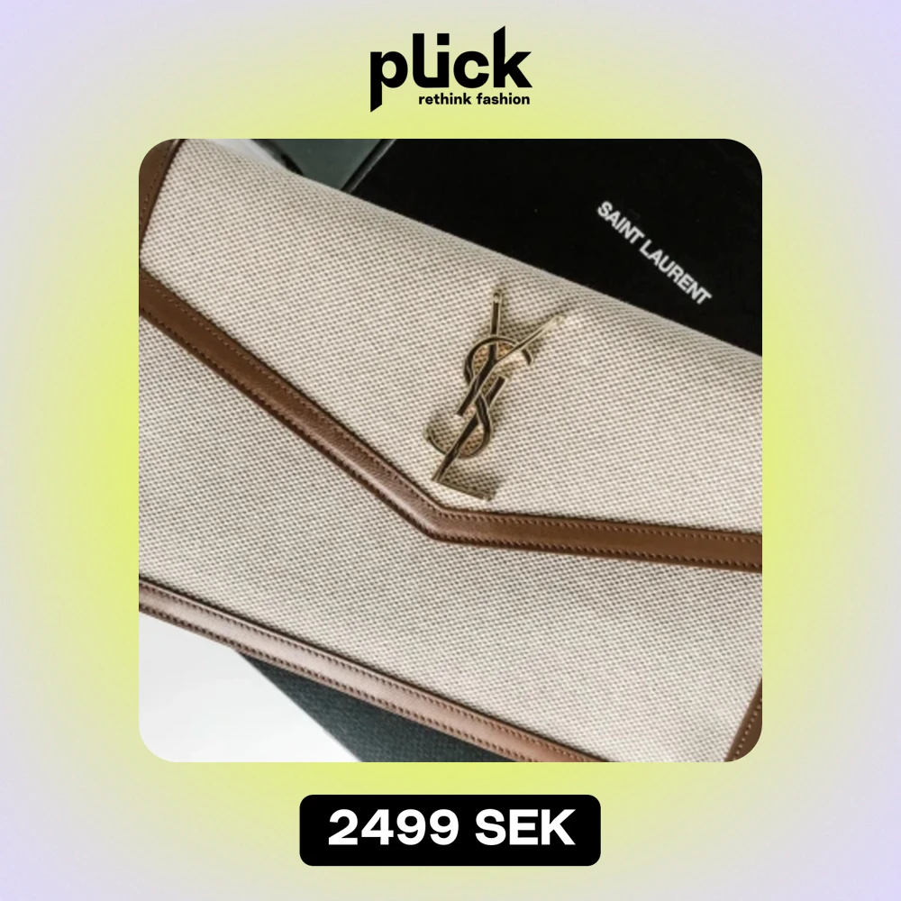 Intressekoll på min fina pouch | handväska från YSL. Fick den i present så vet tyvärr ej om den är äkta eller ej. Dustbag, box medföljer med. Modellen: Uptown pouch in Canvas and smooth leather. Rymmer med en del! Nypris 4800kr.