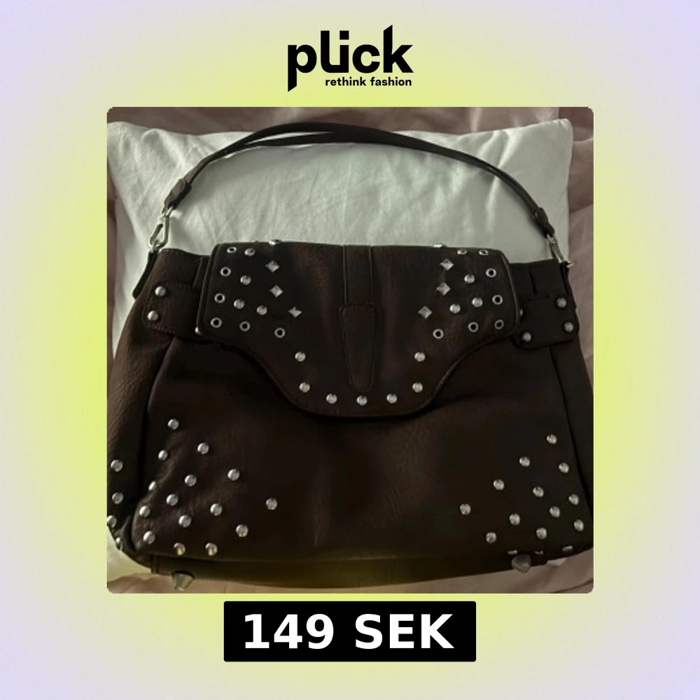 Cool brun axelväska från Carin Wester i syntetmaterial med silverfärgade nitar på locket och hörnen. Väskan har ett brett lock med tryckknapp och ett rymligt huvudfack. Perfekt för dig som gillar detaljer och vill sticka ut lite extra.
