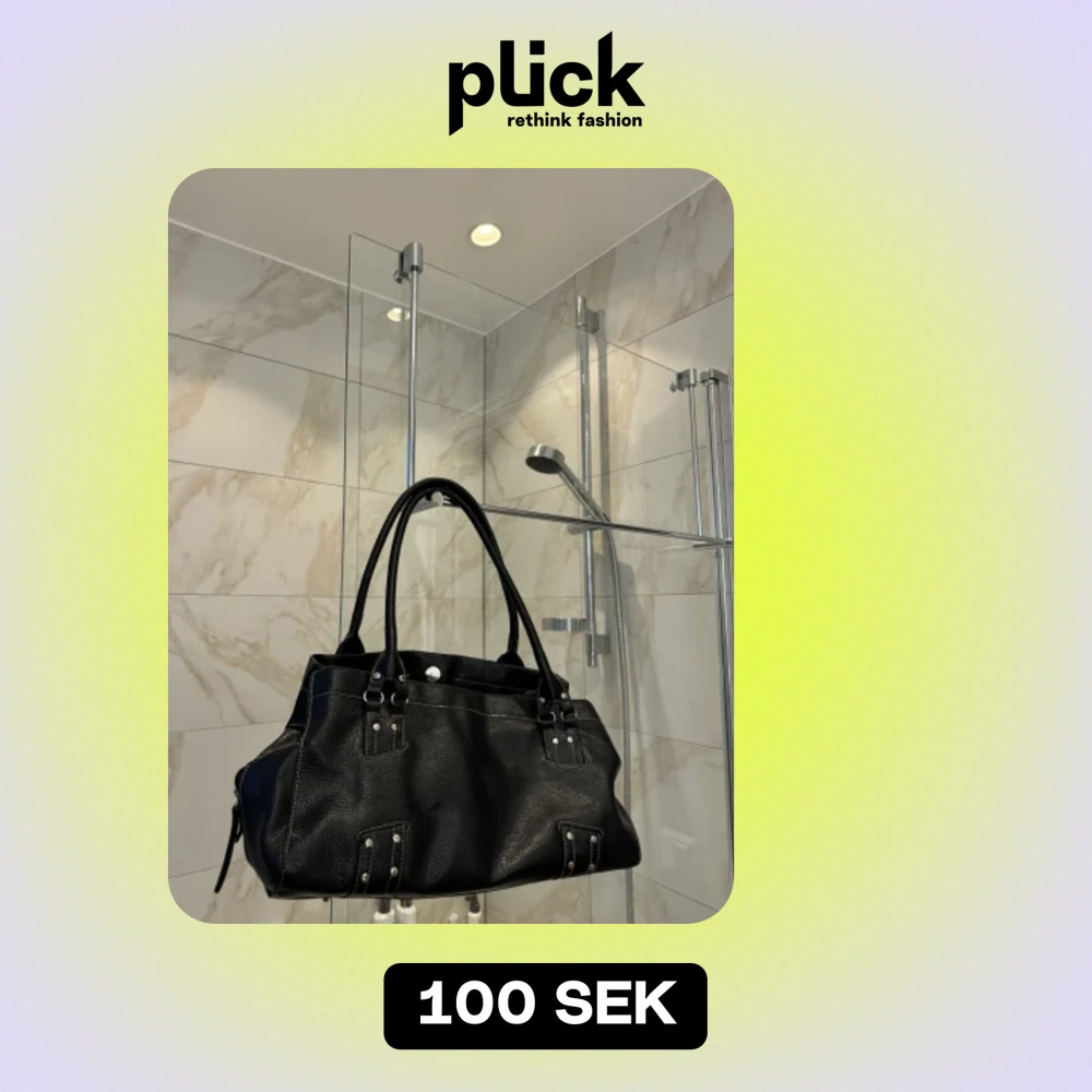 Handväska med silverdetaljer, köpt secondhand, vet ej märke. 19cm höjd, 35 cm bredd.