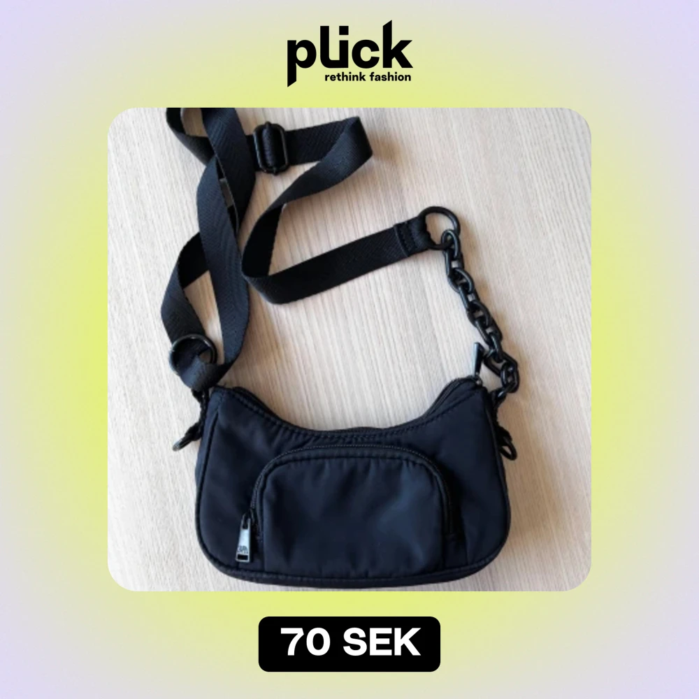 Super snygg svart handväska från Zara med kedje-detalj på bandet och justerbart band ⛓️💥 knappt använd som ny! Ca 21cm bred, 10-13cm hög och 5cm botten