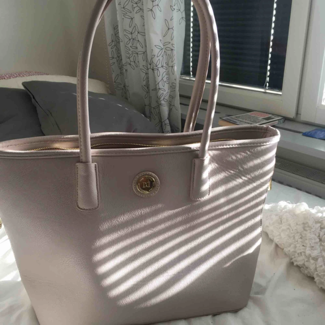 Ljusrosa handväska från Don Donna som är perfekt för jobb eller skola, rymmer mycket. Köpt för lite mer än ett år sen men har inte fått användning för den. Köparen betalar frakt.