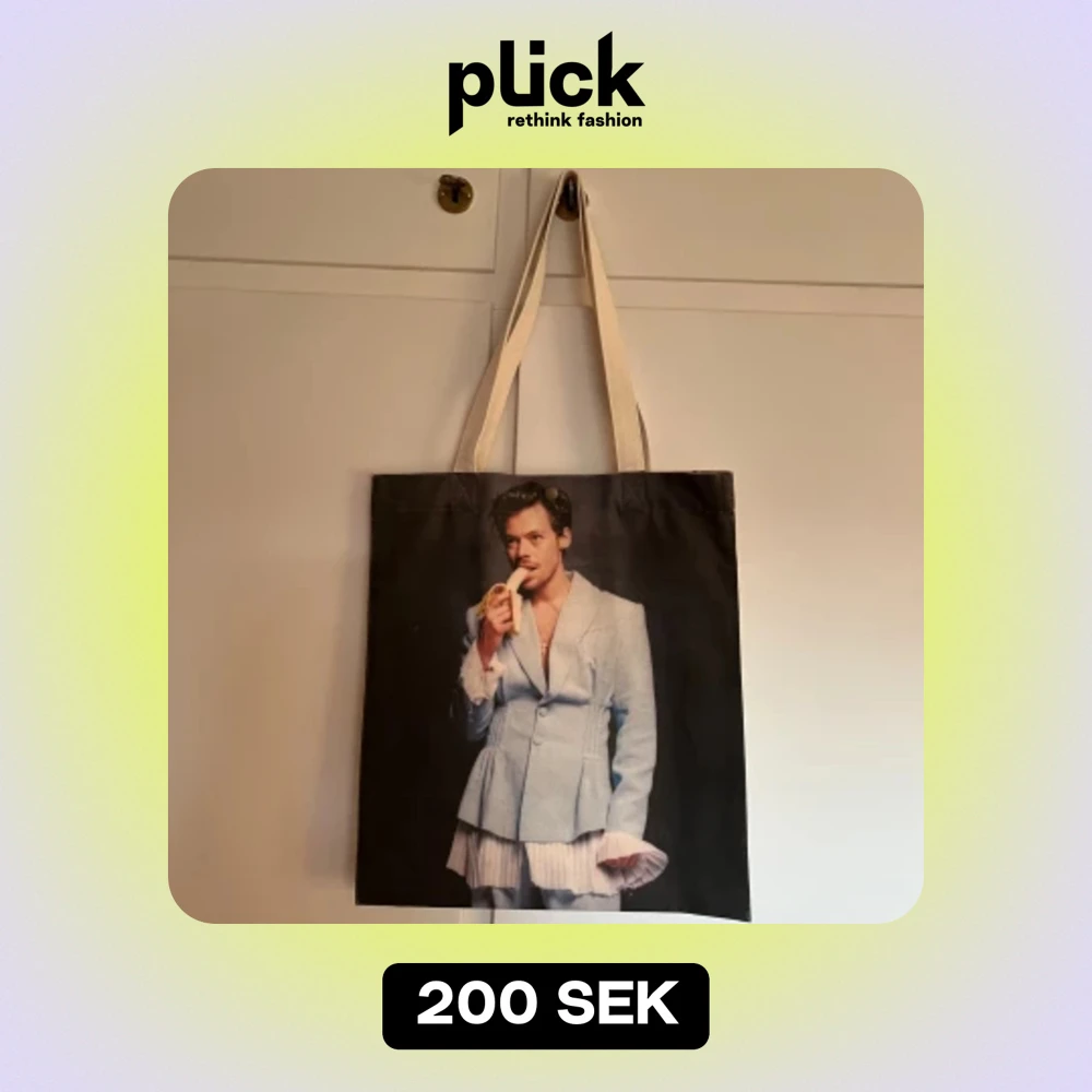 Harry Styles totebag från butiken Ivan Alexis i Köpenhamn 🤍 Aldrig använd och i jättebra skicka då tyget är väldigt tåligt, rejält och tjockt 🤍