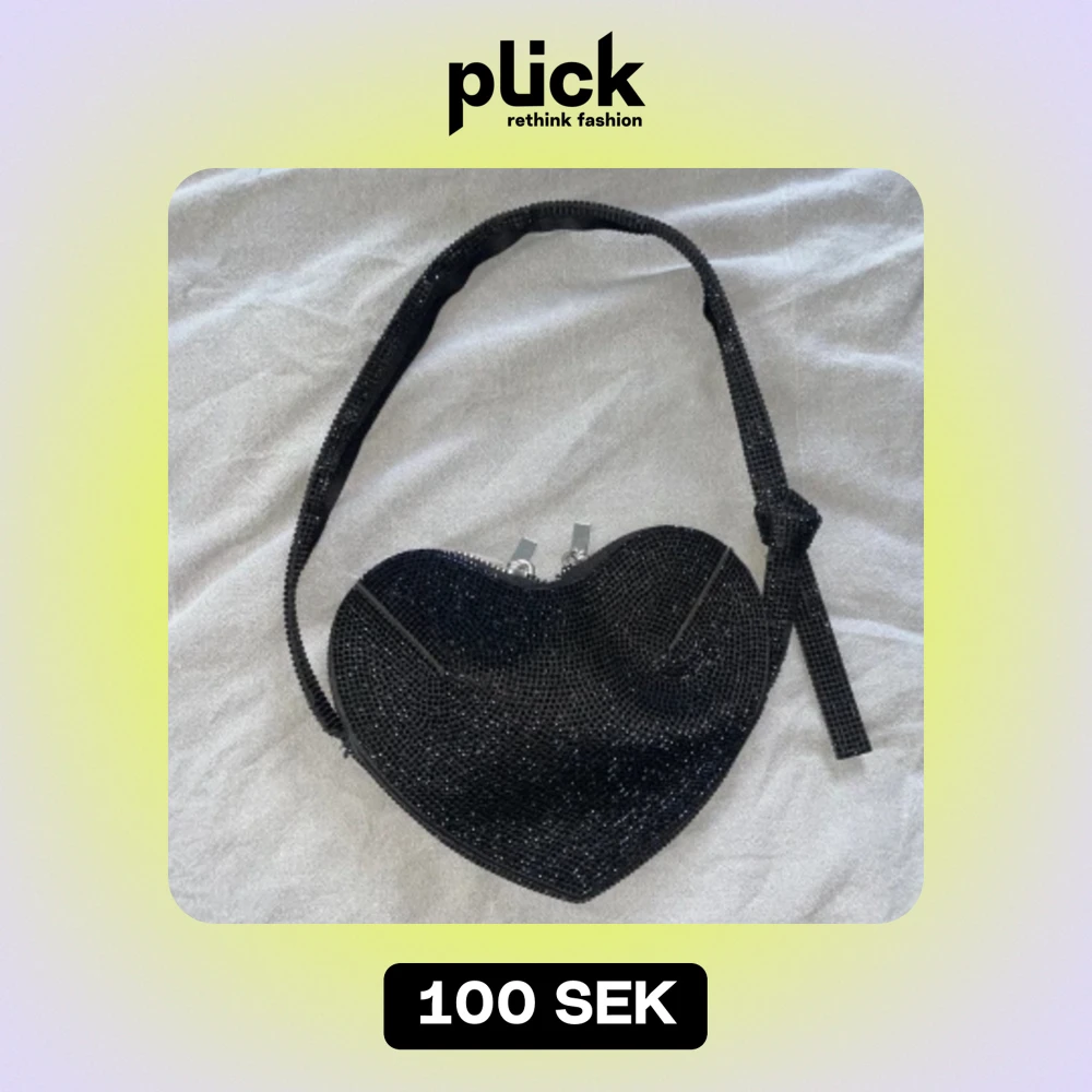Svart glittrig hjärtformad väska från Zara, axelremmen är defekt men går säkert att limma fast. Väskan har ett innerfack och det finns inga fläckar eller liknande på samt i väskan.