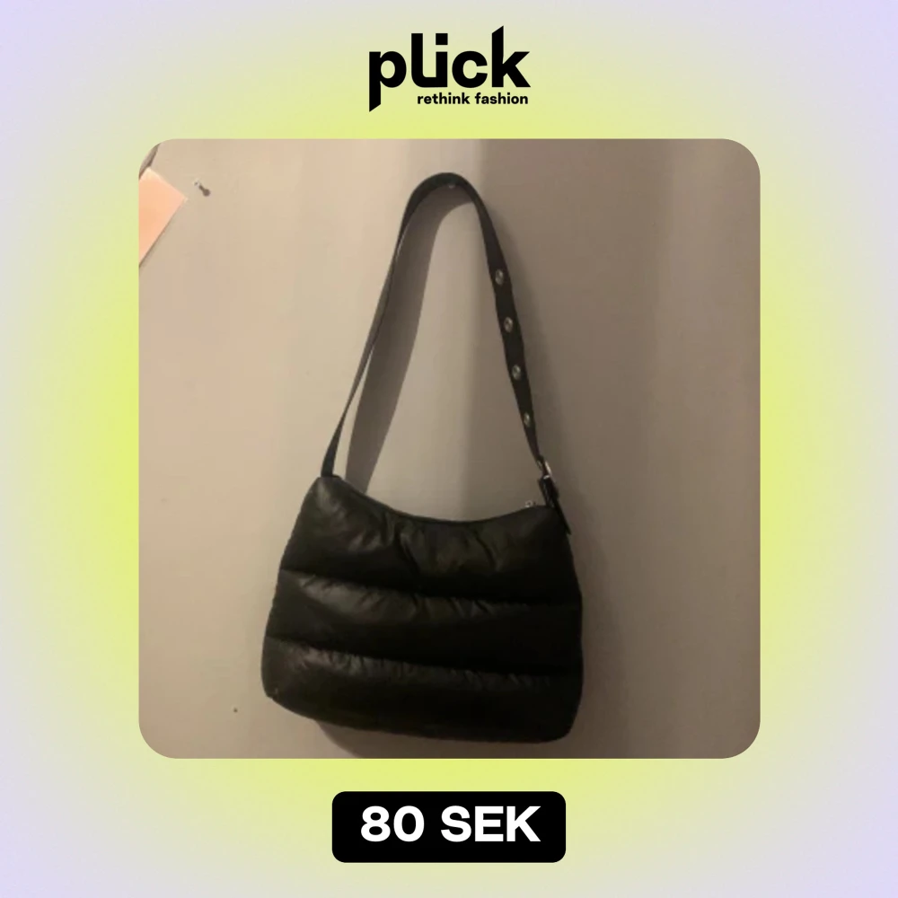 Handväska köpt på h&m det material den är på utsidan är samma som en jacka går att ändra längd! Mycket får plats i den och använd typ 5 gånger.