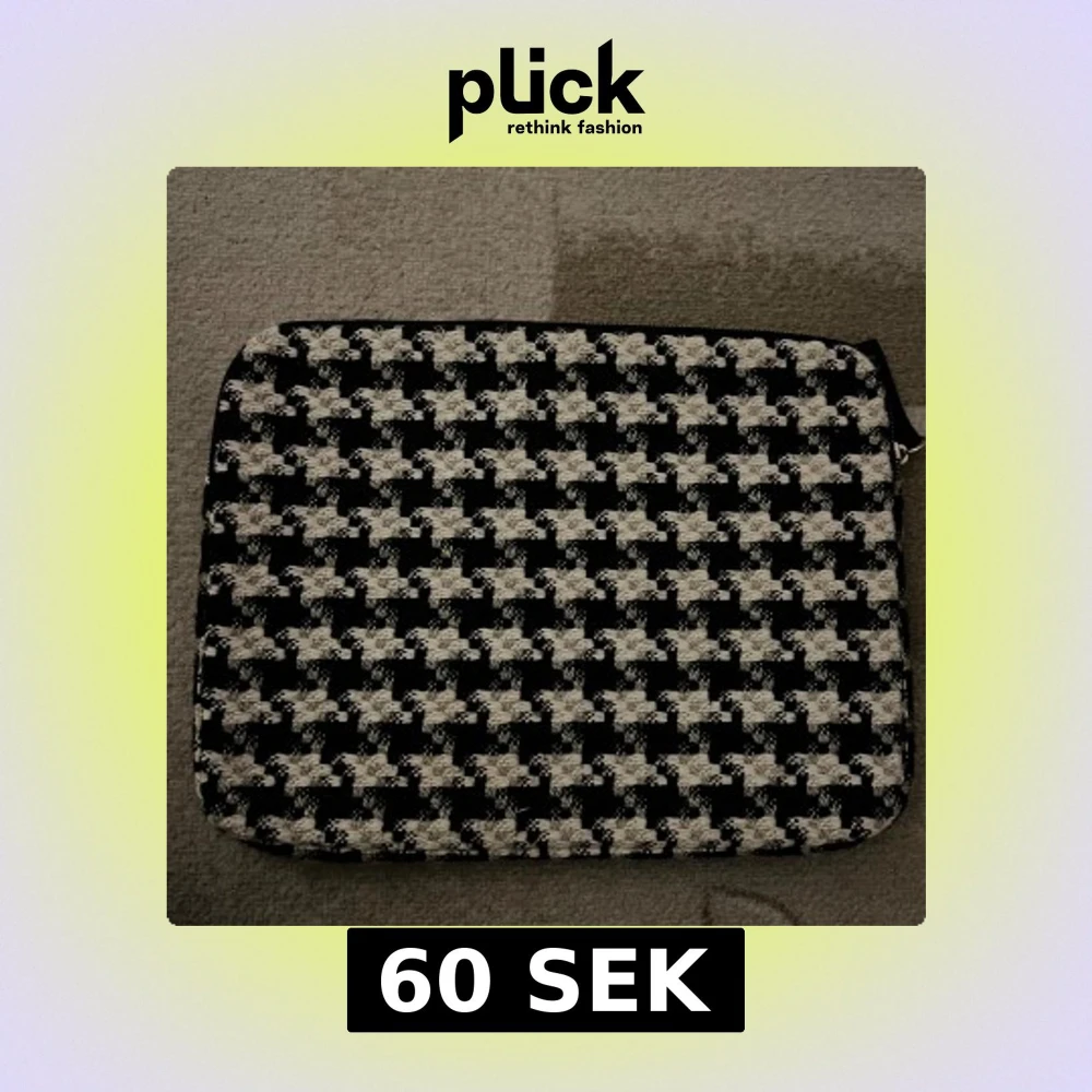Säljer en datorväska med klassiskt svartvitt rutigt mönster. Väskan har dragkedja upptill och är perfekt för att skydda din laptop. Stilren och passar till många olika tillfällen.