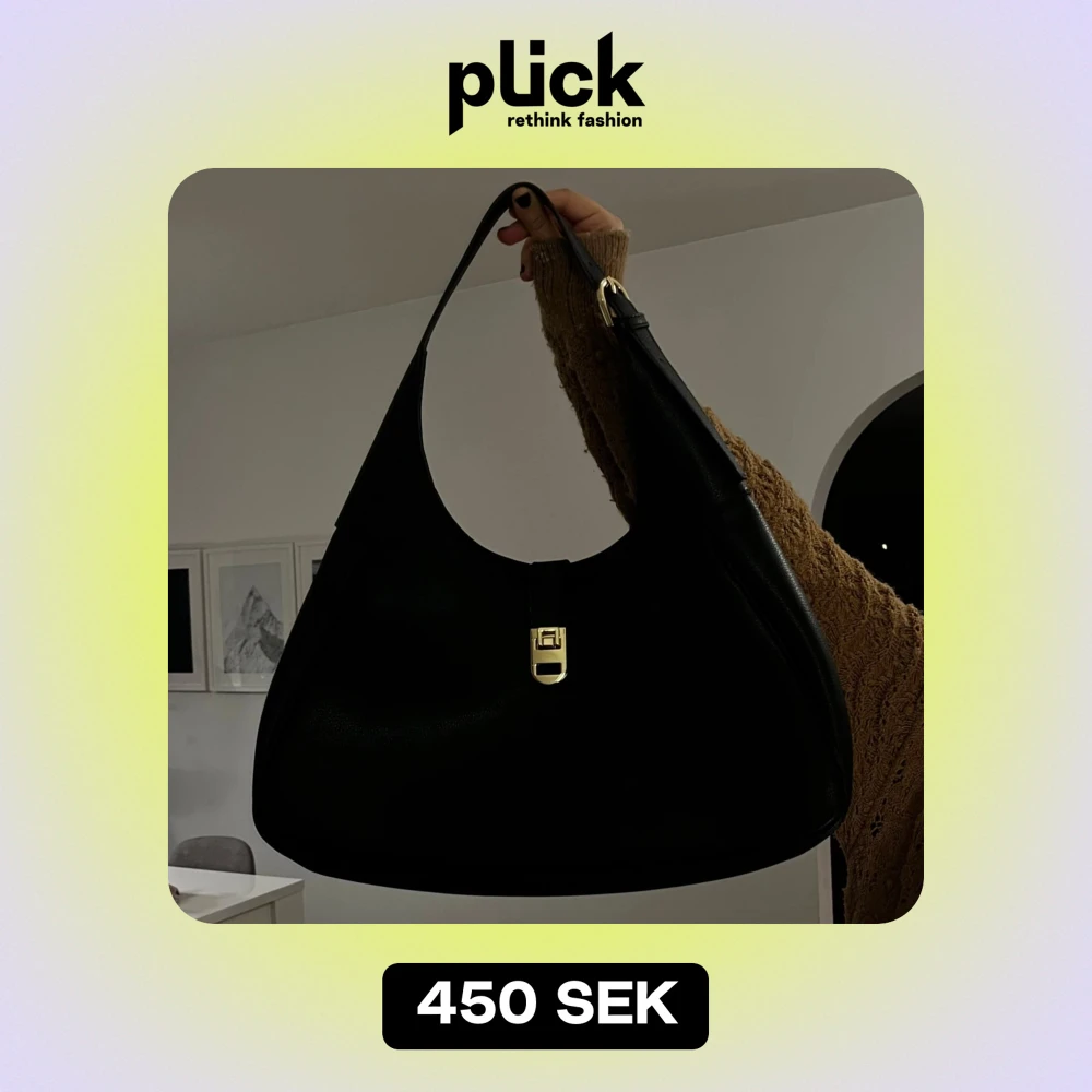 Snygg svart axelväska i skinn med elegant guldfärgad låsdetalj framtill. Perfekt för både vardag och fest. Väskan har en enkel och stilren design med en bekväm axelrem.