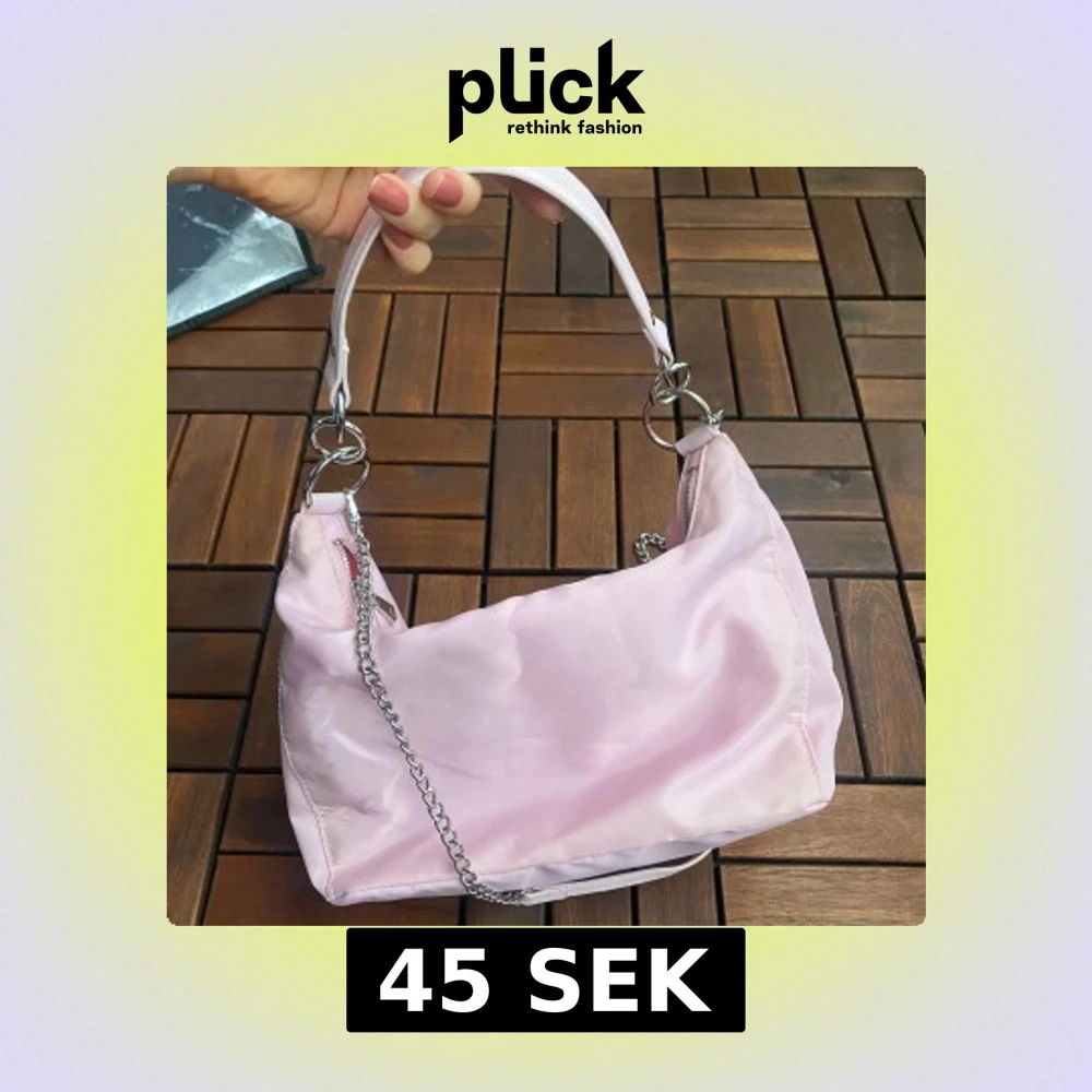 Snygg ljusrosa axelväska med silverfärgad kedja och dragkedja upptill. Väskan har en mjuk, glansig yta. Perfekt storlek för det viktigaste och har både axelrem och kedjedetaljer som ger en cool vibe, kedjan är avtagbar! Väskan är ny utan prislapp men dvs oanvänd.