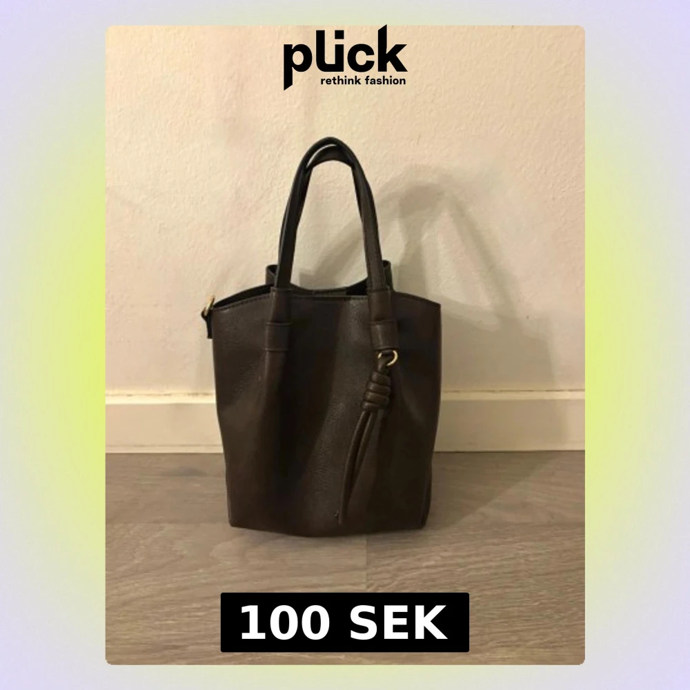 Säljer denna jätte fina slutsålda mörkbrun bucket handväska från HM med två handtag och band som du kan sätta på om man hade velat ha den runt kroppen istället, köpte den för 300kr och är knapt använda,passar perfekt till alla outfits och Rymmer väldigt mycket då det är ett stort fack💕