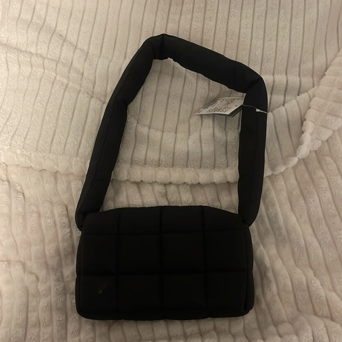 Snygg svart quiltad axelväska i syntetmaterial. Perfekt för både vardag och fest med sitt stilrena och moderna utseende. Väskan har en bred axelrem som gör den bekväm att bära. Enkelt att matcha med olika outfits!